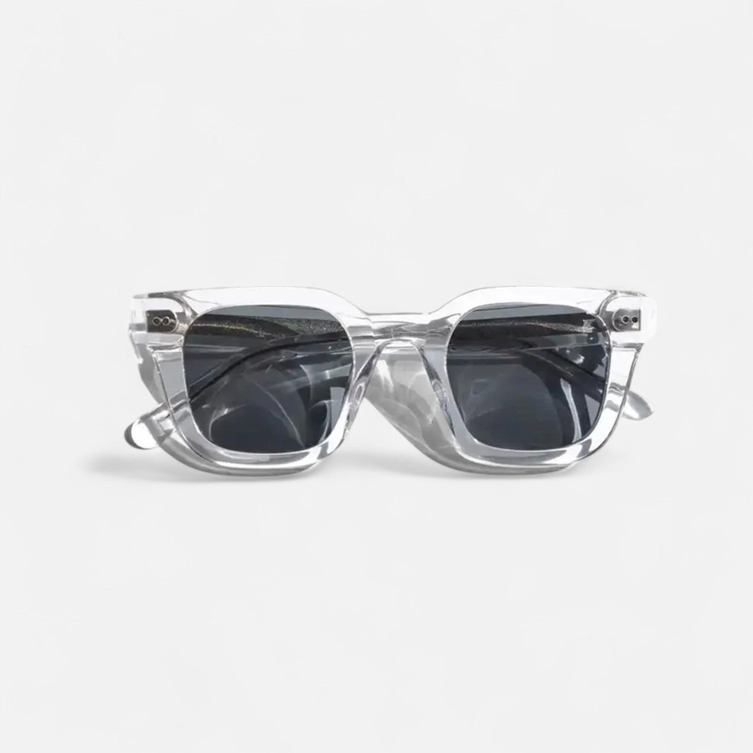 Transparent Frame Glasses – Minimalist accessory with a clear, architectural frame for a subtle yet distinctive look.